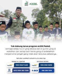 Alhamdulillah Elssi Peduli telah mendistribusikan ratusan mushaf al-Qur’an dan ratusan paket beras ke pondok pesantren yang berada di Kab. Cianjur. Baca Artikel Lainnya..!! Kebahagiaan nampak